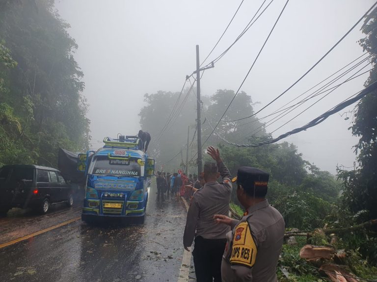 “Pukul 10.30 WIB kendaraan sudah bisa melintas karena evakuasi pohon tumbang dilakukan dengan cepat dan menggunakan bantuan unit mesin Sinswo,” ujar Kapolres.