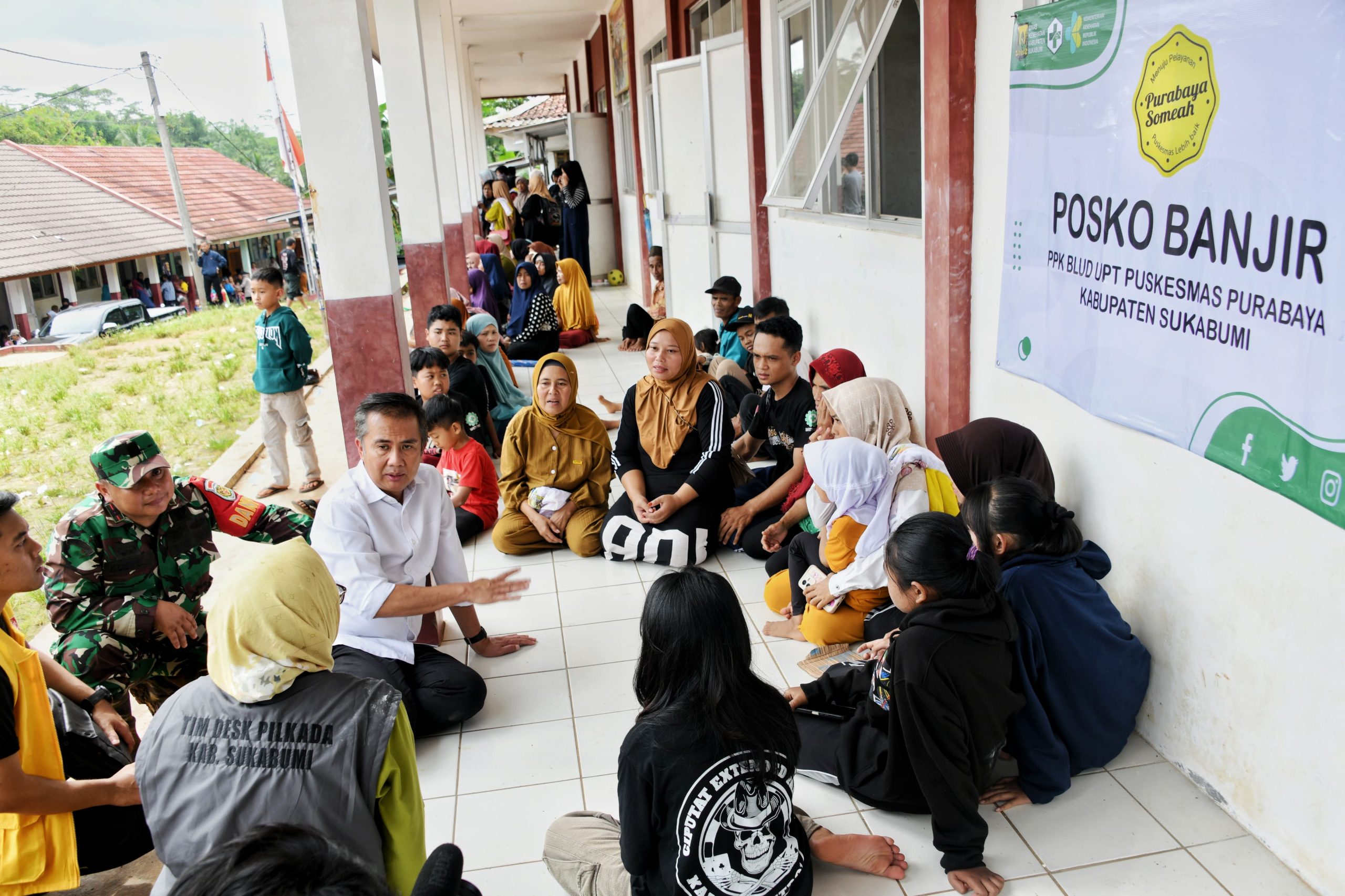 Sebelum meninjau lokasi bencana di Kecamatan Purabaya, Bey Machmudin mendampingi Wakil Presiden Gibran Rakabuming Raka menemui warga terdampak bencana.