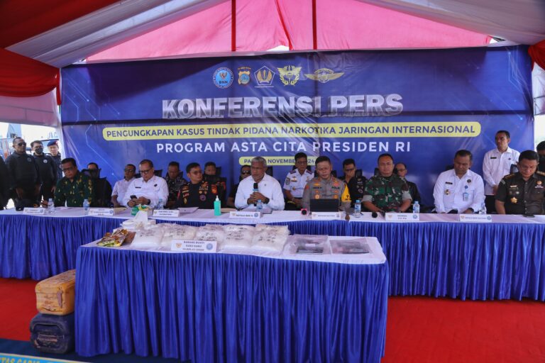 Breakingnewsjabar.com – Sulawesi Tengah | Badan Narkotika Nasional Republik Indonesia (BNN RI) bersama Bea dan Cukai berhasil melakukan pemberantasan peredaran gelap narkotika golongan I jenis sabu di Palu, Sulawesi Tengah. Tiga orang pelaku berinisial H, N dan M diringkus oleh petugas beserta barang bukti seberat 19.846,43 (Sembilan belas ribu selapan ratus empat puluh enam koma empat puluh tiga) gram. Diketahui, kelompok ini merupakan jaringan Internasional Malaysia – Indonesia. Para tersangka berangkat ke Pulau Sebatik menuju Pulau Bunyu untuk mengambil barang haram yang akan diantarkan ke perairan Donggala, Sulawesi Tengah. (21 November 2024)
