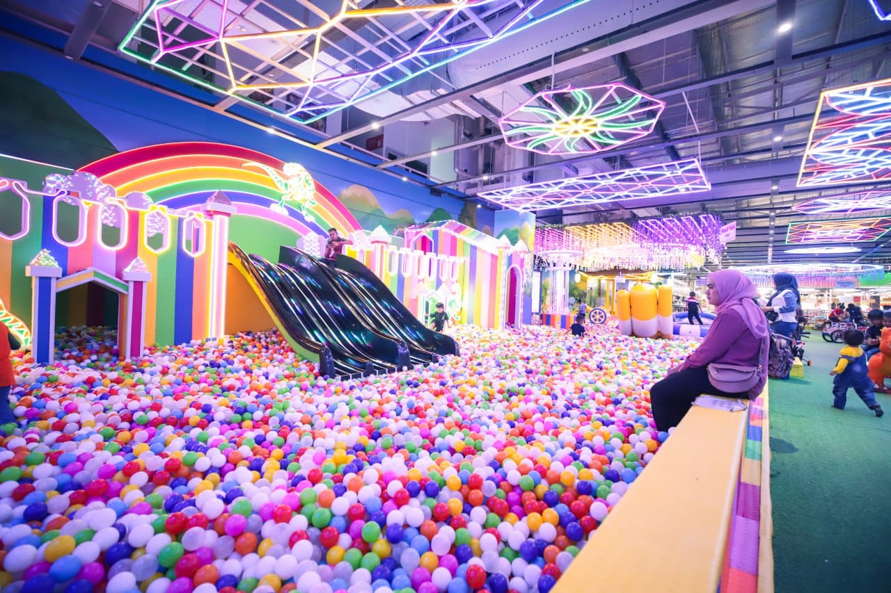 Berbagai wahana dihadirkan mulai dari rainbow slide yang jadi ikon City Garden. Kemudian mini gokart, wahana mandi bola, motor dino, balon air dan masih banyak wahana lain yang mesti dicoba satu persatu.