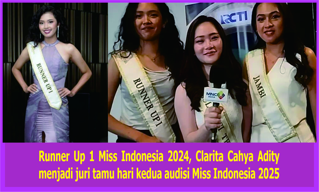 Breakingnewsjabar.com – JAKARTA | Clarita Cahya Adity, Runner Up 1 Miss Indonesia 2024, terpilih menjadi juri tamu pada hari kedua audisi Miss Indonesia 2025 di MNC Studios, Kebon Jeruk, Jakarta Barat, Minggu (3/11/2024). Clarita tidak datang sendirian, ia ditemani dua rekannya, Livia Monika (Miss Indonesia Sulawesi Tengah 2024) dan Jennifer Evelyn Samosir (Miss Indonesia Jambi 2024). Ketiganya bertugas sebagai juri pada hari kedua audisi tersebut.