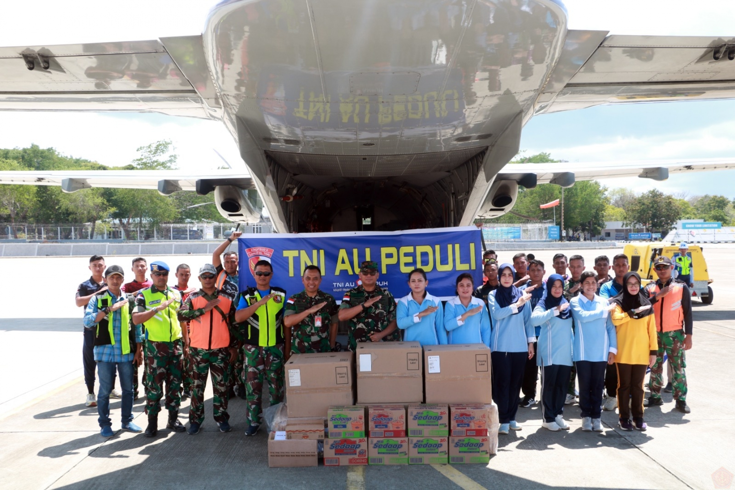 Bantuan logistik yang dikirim berasal dari Panglima TNI Jenderal TNI Agus Subiyanto, S.E., M.Si., serta Ketua Umum Dharma Pertiwi dan IKKT Pragati Wira Anggini, Ny. Evi Agus Subiyanto menggunakan Pesawat CN-295 TNI-AU / A 2905 dari Lanud El Tari Kupang menuju Bandara Gewayantana, Larantuka, Kecamatan Ile Mandiri, Kabupaten Flores Timur.