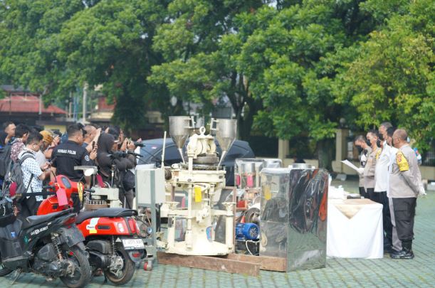 Sedangkan Barang Bukti dari TKP 2 Kec. Situraja Kab. Sumedang ditemukan 1 (satu) unit mesin cetak/press dan 5 (lima) kg bahan Hexymer yang belum diproduksi.