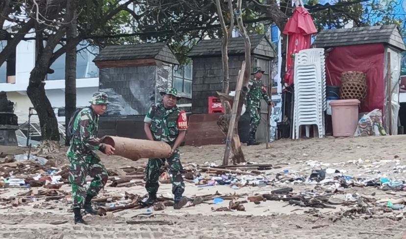 Dukung Pariwisata Berkelanjutan, Kodim 1611/Badung Gelar Aksi Bersih di Pantai Kuta