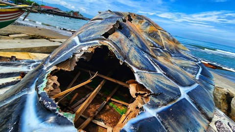 Indra juga menjelaskan bahwa replika penyu terbuat dari bahan resin berkualitas tinggi, sementara kardus dan bambu hanya digunakan sebagai alat bantu untuk membentuk struktur patung. “Jadi bukan terbuat dari kardus, tetapi kardus digunakan sebagai bahan pembentuknya saja,” tegasnya.