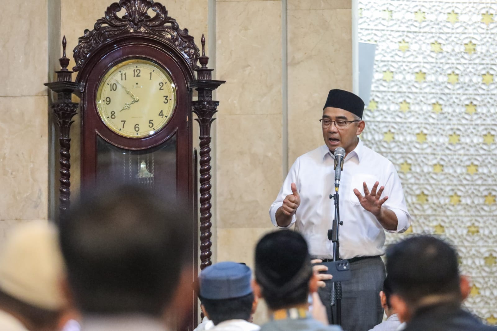Dalam sambutannya di Masjid Al Ukhuwah, Farhan kembali memperkenalkan diri kepada jamaah sekaligus mengajak warga untuk menyambut Ramadan dengan hati yang bersih dan penuh kesadaran.