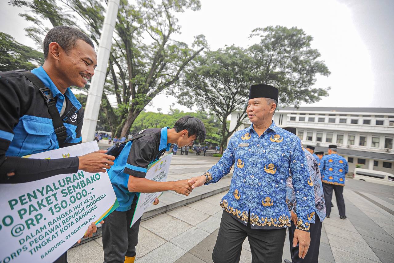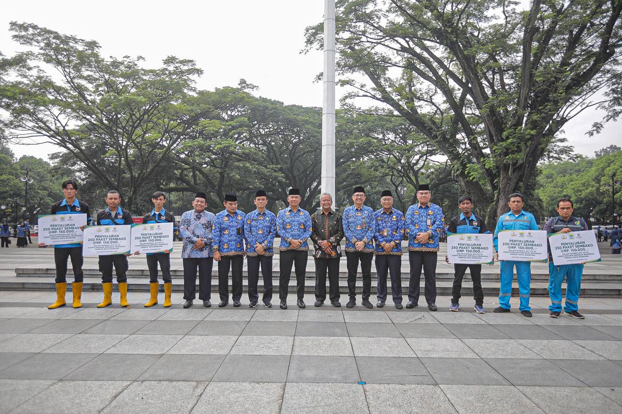 Acara ini juga diwarnai dengan penyerahan 250 bantuan sembako secara simbolis kepada Gober, Linmas dan Petugas kebersihan Balai Kota Bandung senilai Rp150.000/paket, sebagai wujud nyata kepedulian sosial KORPRI terhadap masyarakat.