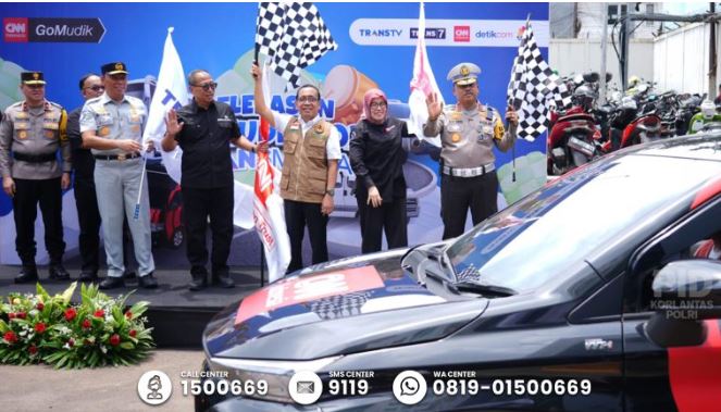 Breakingnewsjabar.com – JAKARTA | Kepala Korps Lalu Lintas (Kakorlantas) Polri, Irjen Pol Drs. Agus Suryonugroho S.H., M.Hum., menghadiri acara pelepasan Tim Mudik 2025 Transmedia di Gedung Trans Media, Jakarta, Senin (24/3/2025). Acara ini turut dihadiri oleh sejumlah pejabat tinggi, termasuk Menko PMK Pratikno, Karo Penmas Divhumas Polri Brigjen Pol Trunoyudo Wisnu Andiko, Dirut PT Jasa Raharja Rivan A Purwantono, dan Direktur Angkutan Jalan Dirjen Hubdat Kemenhub Ernita Titis Dewi.