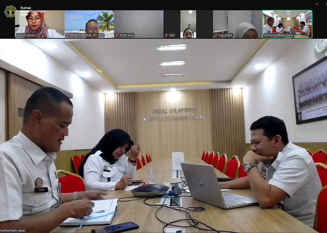Dari ruang rapat Ismail Saleh, Kanwil Jabar, Kepala Subbidang FPPHD Suhartini bersama para Perancang PUU Kanwil Jabar melaksanakan rapat pembahasan secara daring bersama Perangkat Daerah Pemkot Depok membahas Raperda tentang Penyertaan Modal oleh Pemkot Depok kepada Perusahaan Perseroan Daerah Air Minum Tirta Asasta Kota Depok Tahun 2026-2030.