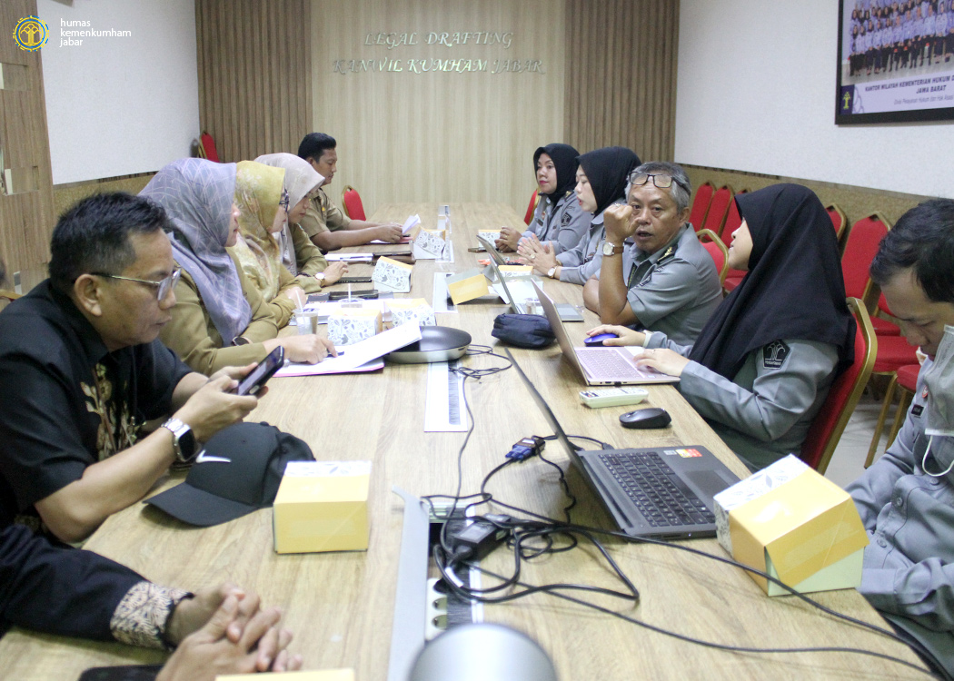 Pada ruang rapat Ismail Saleh, Kanwil Jabar, Kepala Bidang Hukum Lina Kurniasari bersama Kepala Subbidang FPPHD Suhartini, Perancang PUU Madya Yayan dan para Perancang PUU Kanwil Jabar menerima kedatangan tim Perangkat Daerah Pemkab Majalengka untuk membahas Raperbup tentang Penyelenggaraan Pengembangan Anak Usia Dini Holistik-Integratif, Raperbup tentang Pajak Daerah dan Raperbup tentang 162 Batas Desa.