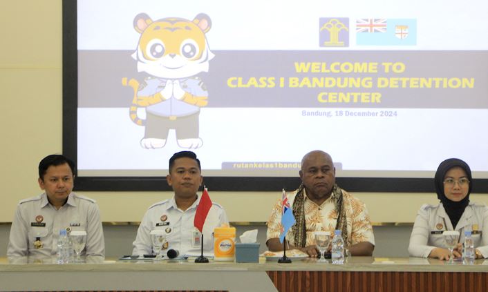 Pada Rutan Bandung, Kepala Bidang Pembinaan, Bimbingan & TI Candra Kushendar bersama Kepala Rutan Bandung Suriyanta Leonardo Situmorang dan jajarannya menerima kedatangan tim delegasi dari Fiji yang dipimpin oleh Jalesi Nakarawa dan didampingi oleh tim Direktorat Jenderal Pemasyarakatan (Ditjenpas).