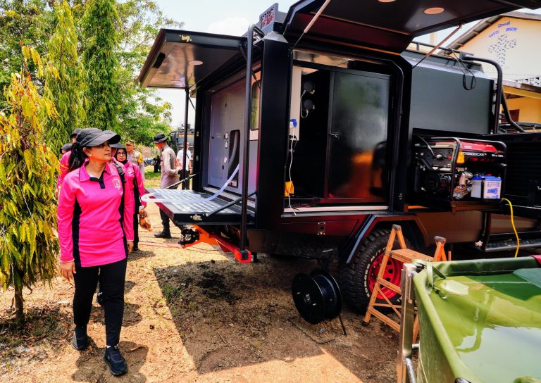 Breakingnewsjabar.com – Flores Timur, 14 November 2024 — Ketua Umum Bhayangkari, Ny. Juliati Sigit Prabowo, meninjau langsung proses penyaluran air bersih bagi para pengungsi korban erupsi Gunung Lewotobi Laki-laki yang ditempatkan di Posko Pengungsian Kobasoma, Desa Kobasoma, Kecamatan Titehena, Kabupaten Flores Timur. Air bersih yang sangat dibutuhkan ini disalurkan melalui kendaraan water treatment yang dioperasikan oleh Brimob Polda NTT.