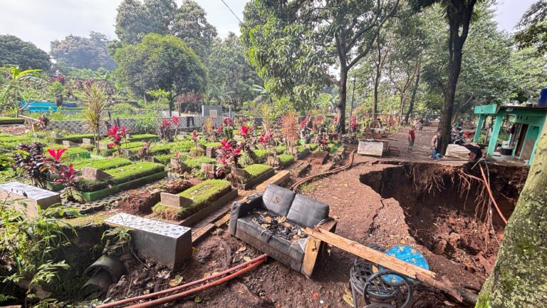 Breakingnewsjabar.com – KOTA BANDUNG | Pemerintah Kota (Pemkot) Bandung bergerak cepat menangani longsor yang terjadi di Tempat Pemakaman Umum (TPU) Nagrog, Kecamatan Ujungberung, akibat hujan lebat pada Sabtu (8/3/2025). Longsor dengan diameter sekitar 30 meter dan kedalaman 10 meter ini berdampak pada delapan makam di Blok E. Sebanyak 8 makam tersebut telah direlokasi ke tempat yang lebih aman untuk menghindari risiko tambahan.
