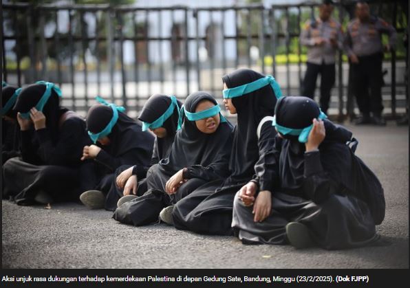 Breakingnewsjabar.com – BANDUNG | Ribuan orang dari berbagai elemen masyarakat di Bandung Raya menggelar aksi unjuk rasa di depan Gedung Sate Bandung, Minggu (23/2/2025). Mereka menyerukan solidaritas global untuk membangun kembali Gaza serta menolak rencana Presiden Amerika Serikat, Donald Trump, terkait pemindahan warga Gaza ke luar Palestina.
