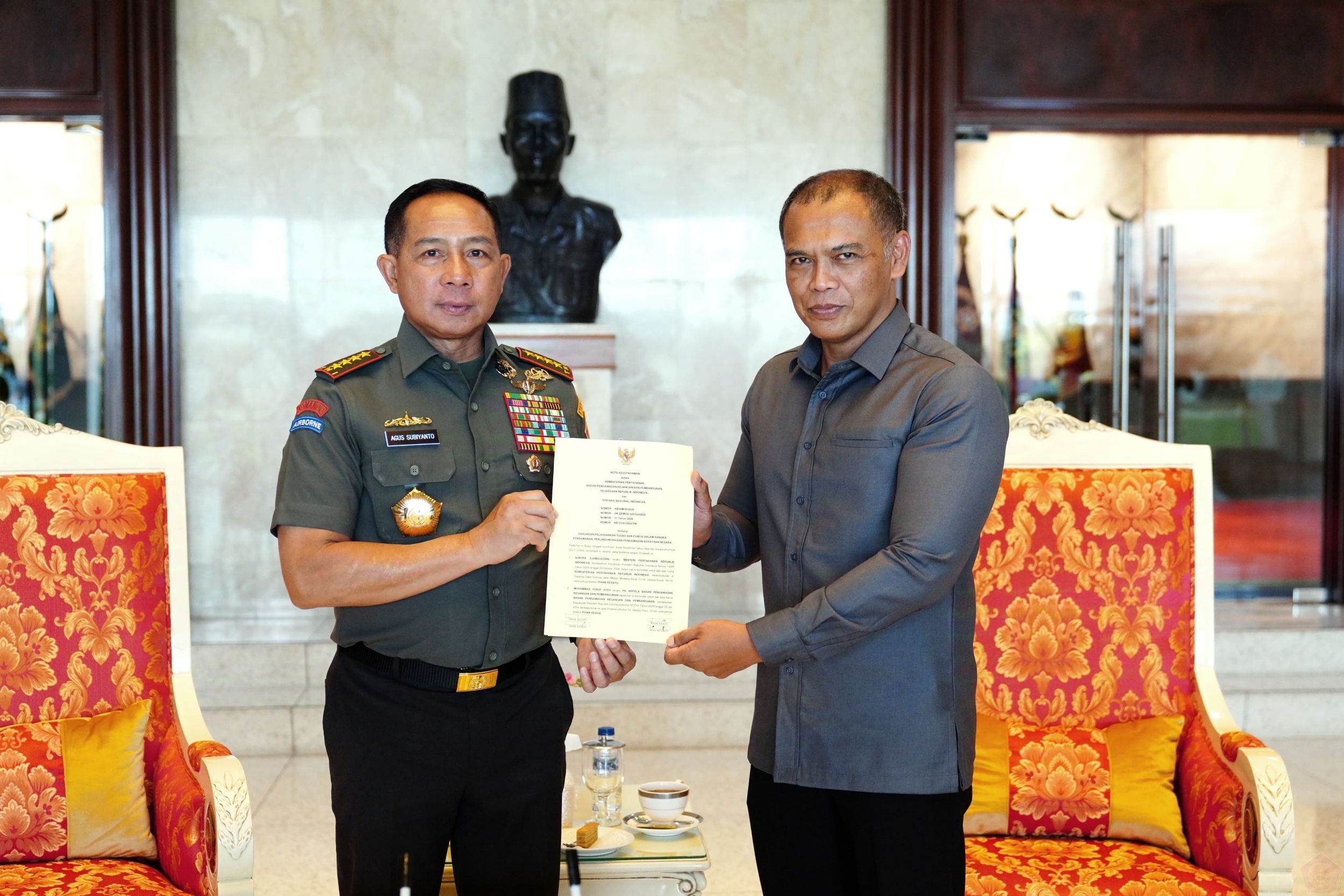 Melalui Nota Kesepahaman ini, seluruh pihak berkomitmen menjaga kekayaan Negara sebagai bentuk tanggung jawab bersama dalam melindungi kepentingan nasional. Turut hadir dalam kegiatan diantaranya, Kasum TNI, para Asisten Panglima TNI, Danpuspom TNI, Kababinkum TNI, Wakapuspen TNI serta Pejabat terkait lainnya.