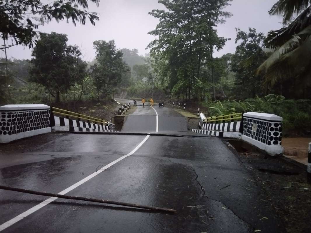 Waluran — Jampang Kulon jalan masih terputus karena amblas dan ruas Bagbagan – Kiaradua sudah tembus untuk dilalui, tetapi masih ada potensi longsoran dan masih banyak sisa material tanah di badan jalan.