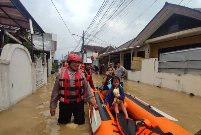 Tim gabungan bergerak cepat melakukan penyisiran di area terdampak banjir guna memastikan keselamatan warga. Petugas mendatangi rumah-rumah yang masih tergenang air dan mengevakuasi warga yang membutuhkan bantuan, terutama anak-anak dan wanita, menggunakan perahu karet.