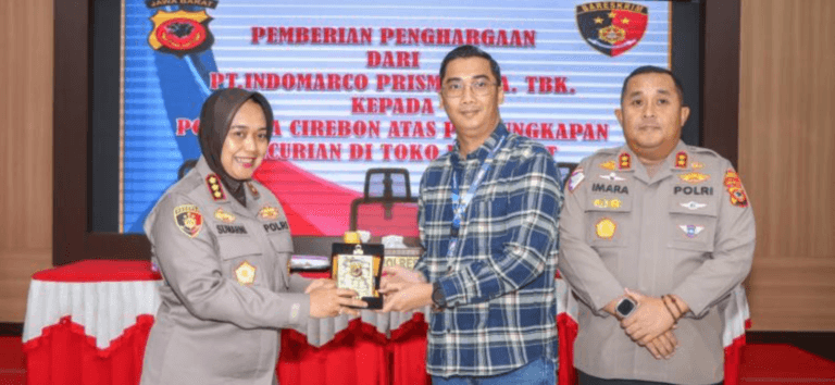 Piagam penghargaan diberikan langsung oleh Branch Manager PT. Indomarco Prismatama Tbk – Cirebon, Andhika Artha Pawitra Sukma, kepada Kapolresta Cirebon, Kombes Pol Sumarni, S.I.K., S.H., M.H., yang didampingi Wakapolresta Cirebon, AKBP Imara Utama, S.H., S.I.K., M.H. Turut hadir dalam acara tersebut Plh. Kasat Reskrim Polresta Cirebon, AKP Iwa Mashadi, S.H., M.H, dan sejumlah perwira serta personel Sat Reskrim Polresta Cirebon dan Polsek jajaran.