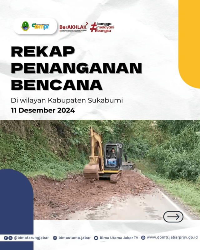 “Untuk penanganan dan percepatan perbaikan kita turunkan 11 tim lapangan dengan dilengkapi sejumlah alat berat ekskavator, wheel loader, Hamm hingga compactor,” kata Bambang Tirtoyuliono di Kota Bandung, Kamis (12/12/2024).