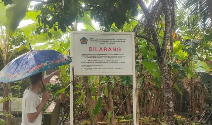 Di lokasi itu, ada 7 warga yang lahan tanahnya diklaim Kemenkeu RI dan kini sudah dipasang plang bertuliskan “Aset ini dalam pengawasan dan penguasaan Kementrian Keuangan Republik Eks PT. PPA (Persero).