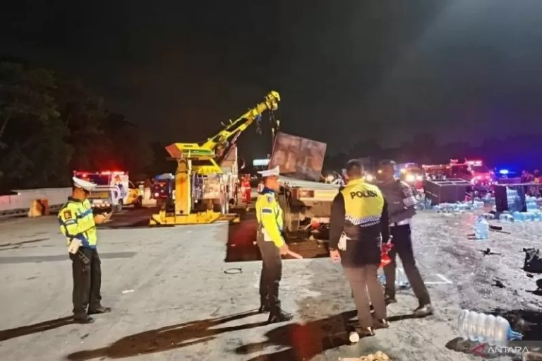 “Diduga kendaraan tersebut mengalami gagal fungsi rem (rem blong) sehingga menabrak rangkaian kendaraan yang sedang melakukan transaksi (pembayaran e-tol) tiga kendaraan hancur terbakar, tiga kendaraan lainnya mengalami kerusakan,” ujarnya.