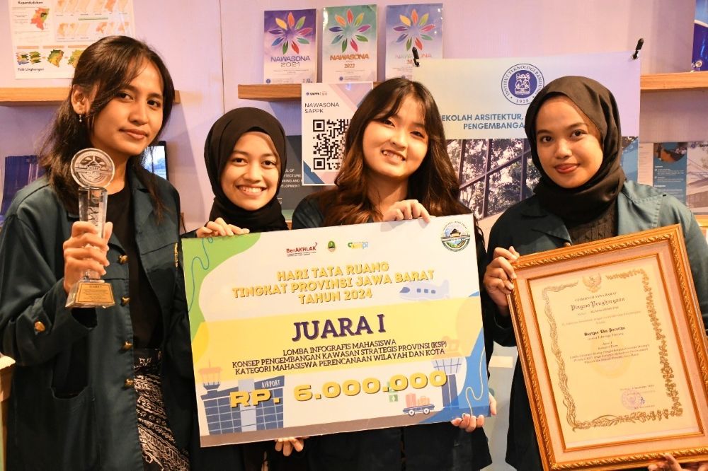 Breakingnewsjabar.com – BANDUNG | Tim Vikasa Kendra yang terdiri atas empat mahasiswa Perencanaan Wilayah dan Kota Institut Teknologi Bandung (PWK ITB) meraih juara 1 pada Lomba Infografis Hari Tata Ruang Tingkat Provinsi Jawa Barat. Kompetisi ini diselenggarakan oleh Bidang Penataan Ruang, Dinas Bina Marga dan Penataan Ruang Provinsi Jawa Barat. Malam penganugerahan digelar pada Rabu (13/11/2024) di Hotel Mason Pine, Kota Baru Parahyangan.
