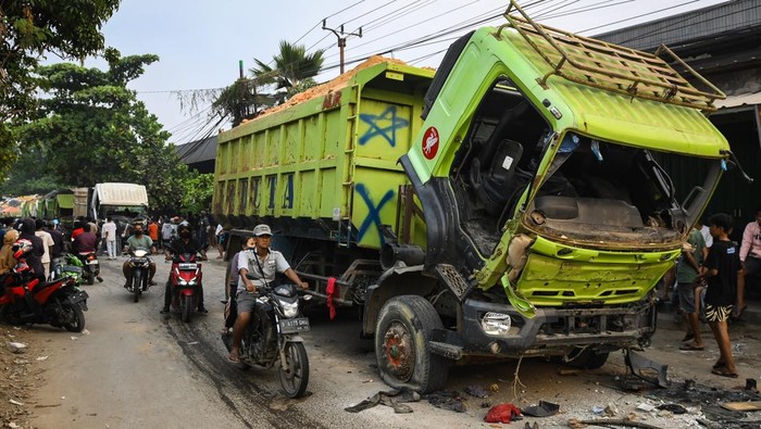 Insiden truk tanah yang menabrak bocah 9 tahun hingga kaki hancur di Teluknaga, Tangerang, menimbulkan kericuhan. Warga tak hanya merusak dan membakar belasan truk, tetapi juga melakukan penjarahan.