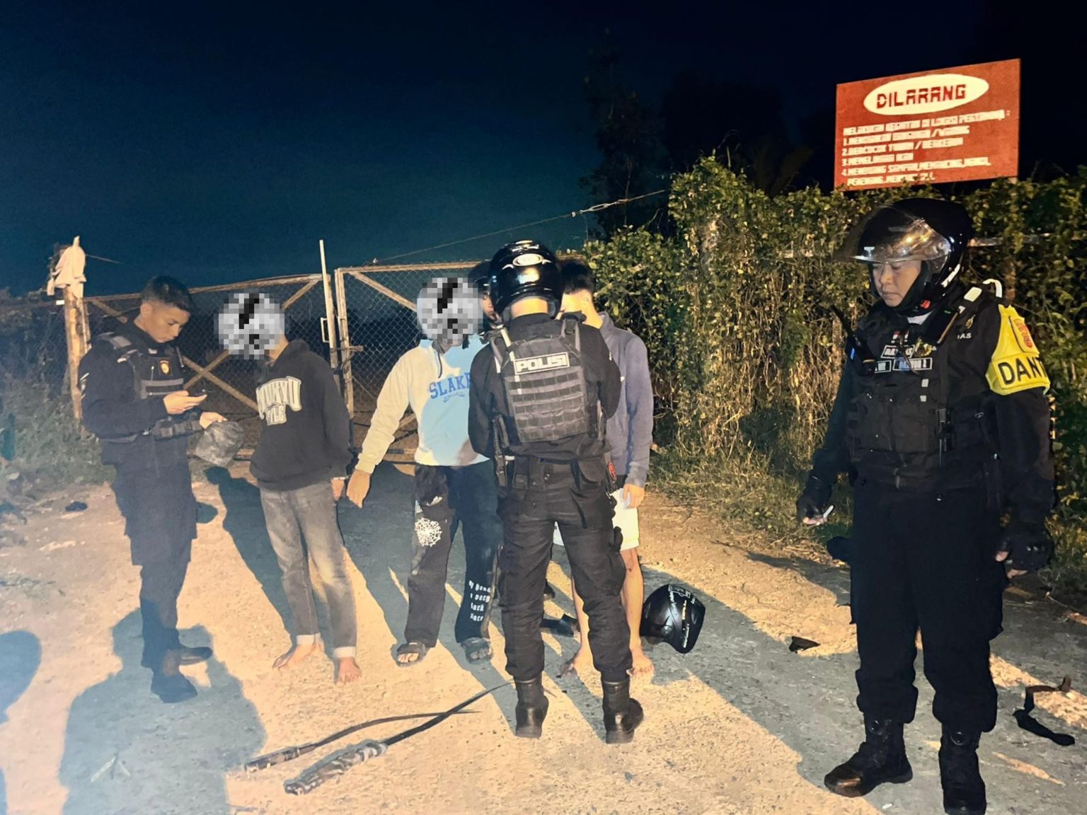 Dalam penggagalan aksi tawuran tersebut, Unit Raimas berhasil mengamankan sembilan remaja yang diduga terlibat secara aktif. Selain mengamankan para pelaku, petugas juga menyita barang bukti berupa tiga senjata tajam (sajam) dan empat unit sepeda motor yang diduga digunakan sebagai sarana dalam aksi tawuran tersebut. Penemuan sajam ini menunjukkan potensi bahaya yang dapat ditimbulkan jika aksi tawuran tersebut tidak segera dihentikan.
