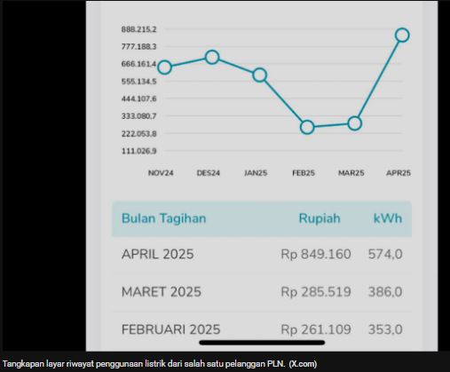Pengunggah menjelaskan bahwa sebelum adanya subsidi, tagihan listriknya berkisar antara Rp 280.000 hingga Rp 320.000 per bulan. Saat subsidi diberlakukan, tagihannya turun menjadi Rp 140.000 per bulan. Namun, setelah subsidi berakhir, ia mengaku harus membayar Rp 611.000 untuk bulan tersebut. Keluhan serupa juga diungkapkan oleh akun @avenoor*** pada Jumat (4/4/2025), yang menyebutkan bahwa tagihannya naik hampir 50 persen meski penggunaannya berkurang.