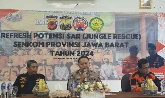 Breakingnewsjabar.com – POLDA JABAR | Sebanyak 70 personel Senkom Mitra Polri se-Jawa Barat mengikuti Refresh Potensi SAR Senkom Jabar Tahun 2024 di Puslatbang PKASN Jatinangor pada 30 November — 1 Desember 2024. Acara ini resmi dibuka oleh Wakil Direktur Binmas Polda Jabar, AKBP Ade Hermanto, yang menekankan pentingnya peran aktif Senkom dalam mendukung tugas kepolisian.